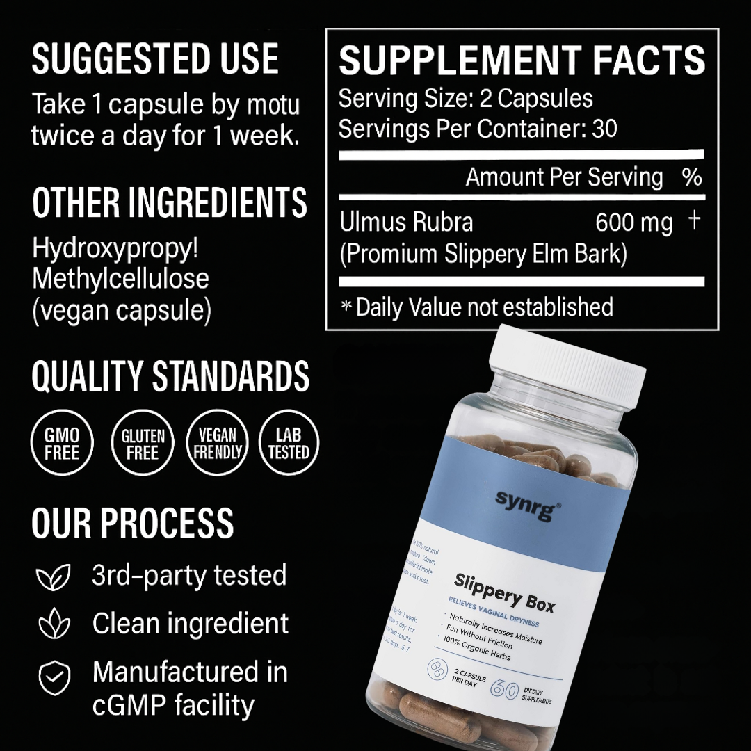 We stand by the power of natural feminine comfort. That’s why every purchase of Slippery Box™ is backed by our 30-day money-back guarantee. Experience noticeable improvements in dryness relief, comfort, and intimate moisture—or receive a full refund, no questions asked.